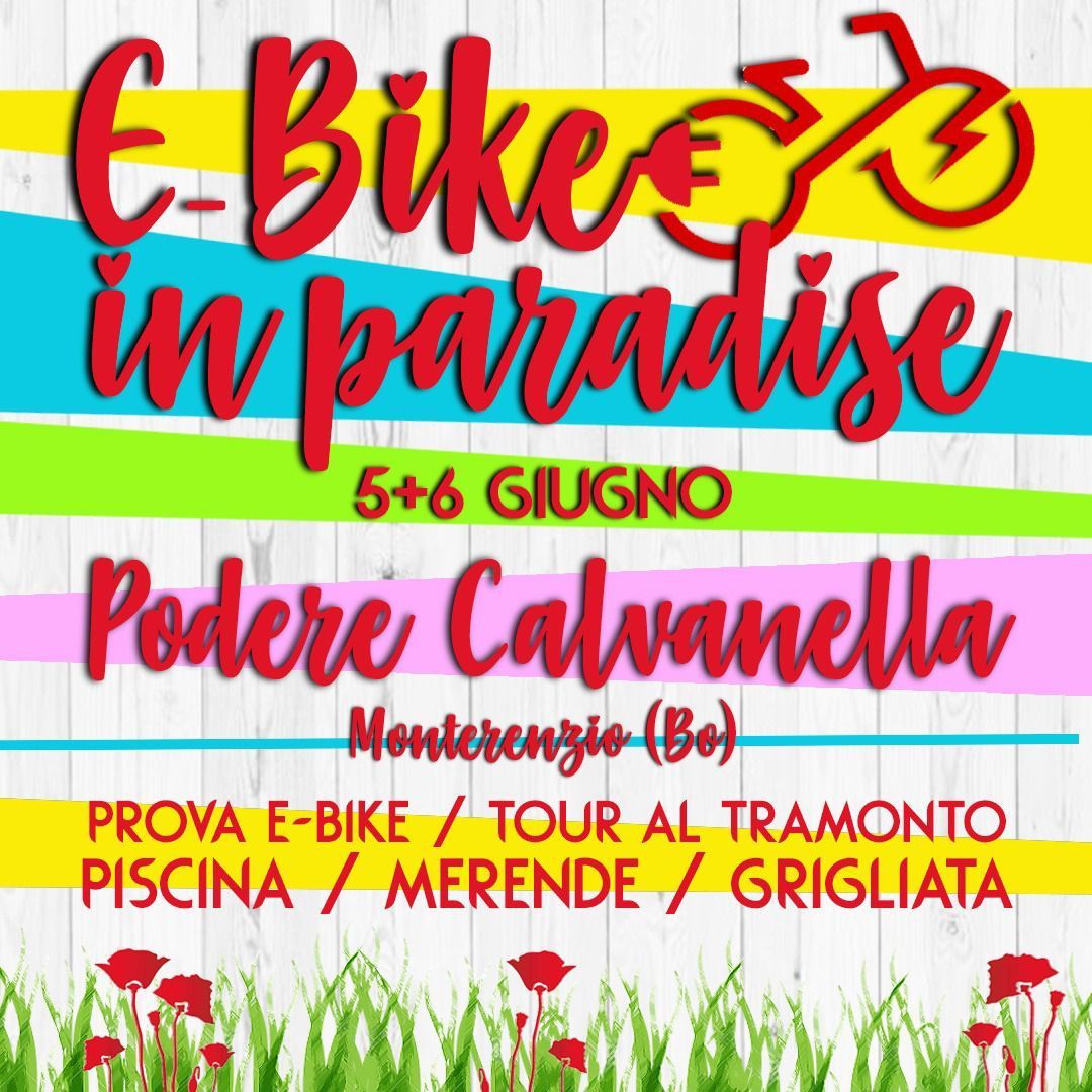 E-Bike Paradise Podere Calvanella Monte Renzio, test e-bike, percorsi accompagnati in e-bike con panorami unici, pistino tecnico per lezioni di guida, piscina, grigliata e pernotto B&B o tenda in location esclusiva