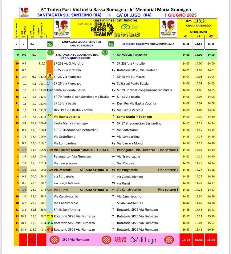 - una al pomeriggio, riservata alla cat. Juniores con tratti di strade bianche.