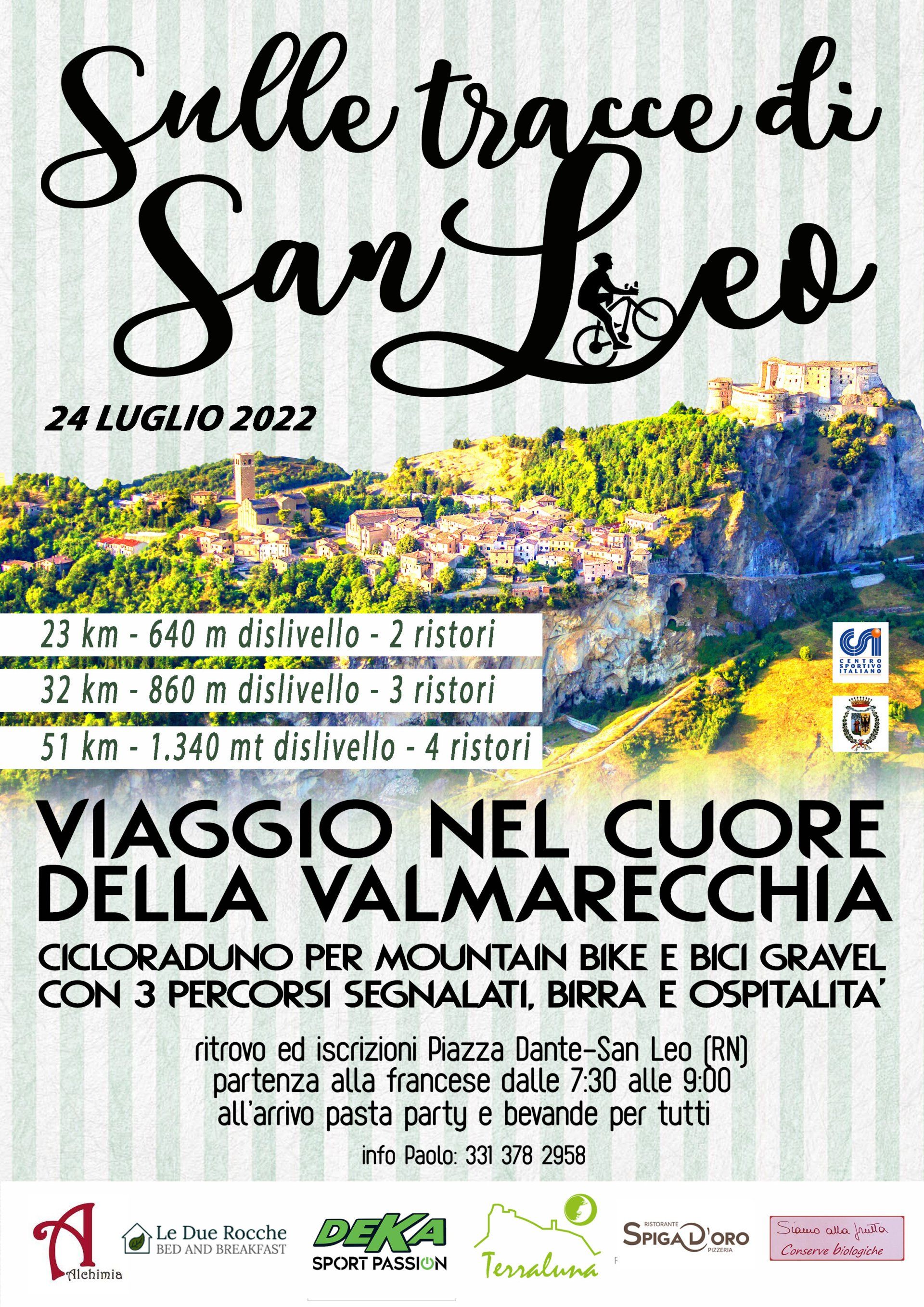 Vi saranno tre percorsi segnalati per bici Mtb o Gravel, con ristori in deliziosi b&b, ristoranti o produttori di alimenti bio dove assaggerete le loro specialita' del territorio ed il pasta party finale in piazza Dante a San Leo.